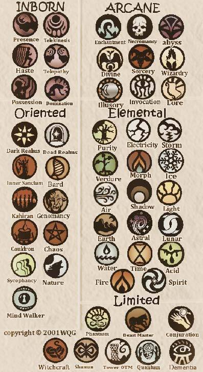 - Elemental - Acid, Air, Astral, Earth, Electrical, Fire, Light, Plants, Shadow, Water.